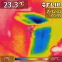 Wir haben die Vorderseite mit einem Gebläse angepustet und mit einer IR-Lampe bestrahlt und dieTemperaturen mit den Sensoren gemessen und Wärmebilder dazu gemacht, damitwir die echte Oberflächentemperatur kennen.