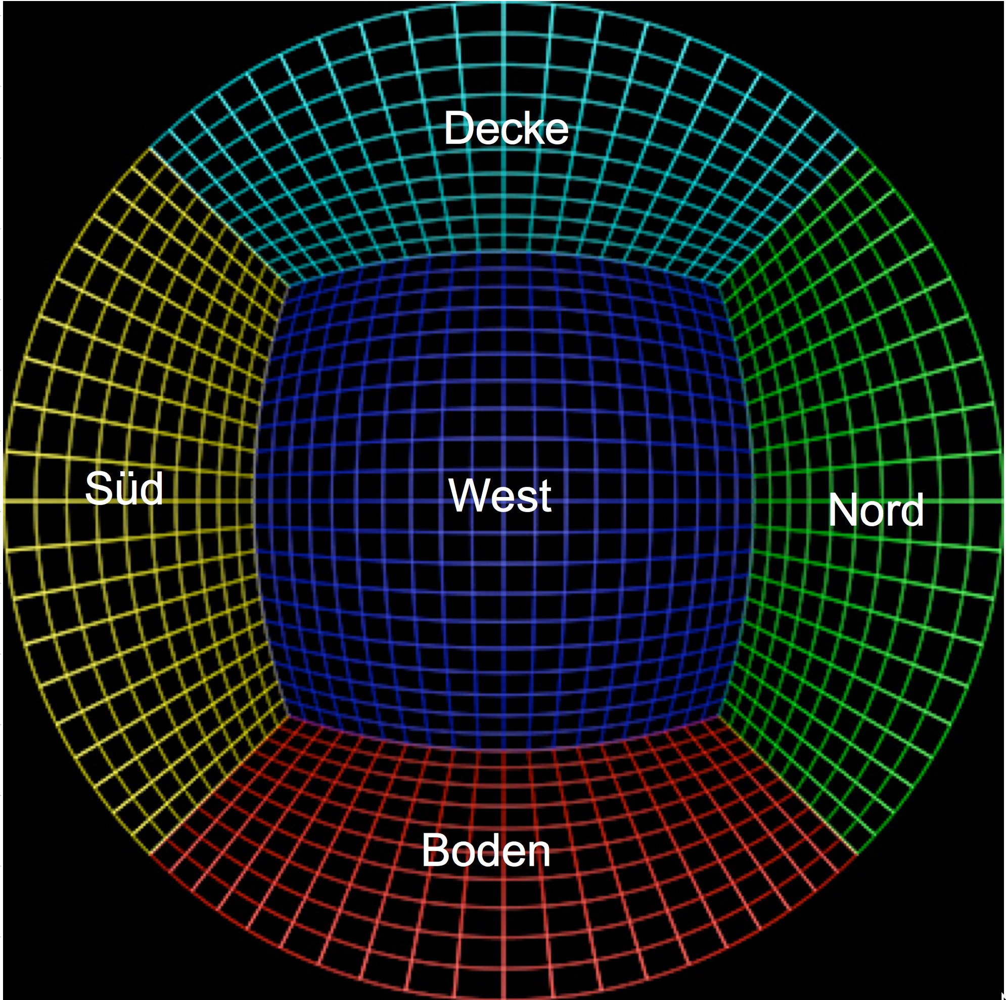 Jede Innenwand im Würfel trägt genau zu einem Sechstel zum Strahlungsaustausch bei.